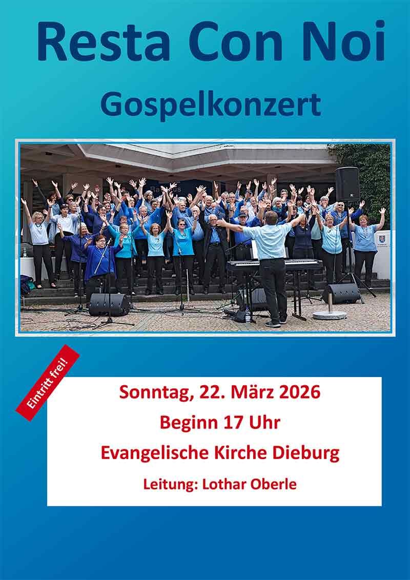 Resta Con Noi wurde als Gesangsgruppe im Juni 1993 von Regine und Lothar Oberle, Jutta und Helmut Blank, Karl und Christina Cronauer und Freunden zunächst als Singkreis „Bivi-Singers“ ins Leben gerufen. Bald entstand der Name „Resta con noi“ (Herr, bleibe bei uns). Das Repertoire beschränkte sich zunächst auf Neues Geistliches Liedgut (NGL) und Oldies. Mittlerweile liegt der Schwerpunkt bei klassischen wie auch modernen Gospels und Spirituals, die mit Energie und Groove dargeboten werden.